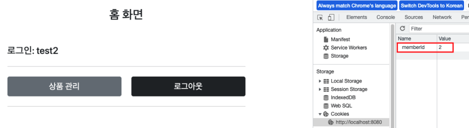로그인 쿠키( memberId )가 있는 사용자는 로그인 사용자 전용 홈 화면인 loginHome 으로 이동한다.
