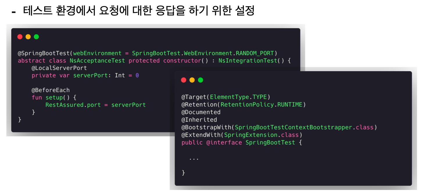 - 실제 요청/응답 환경과 유사하게 테스트 환경 구성