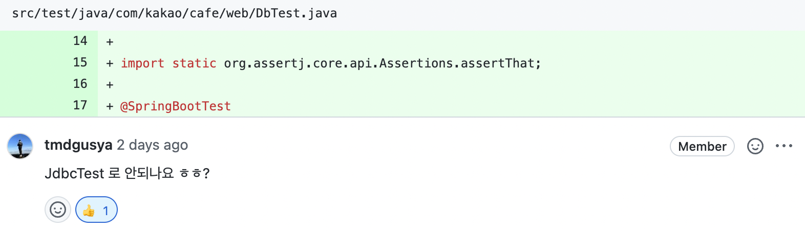 따라서 빈을 찾기 위해 @SpringBootTest 를 사용했다. 하지만 @jdbcTest 는 DataSource를 지원해준다는 사실을 알게 되었고, 메모리 상에서 테스트 하는 다음과 같은 코드를 작성하게 되었다.