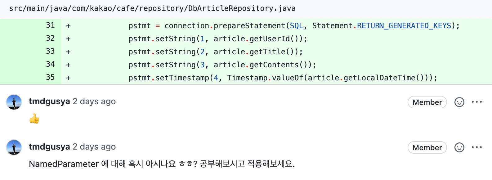 음 순수 JDBC에는 namedParameter가 없는것으로 알고 있습니다.