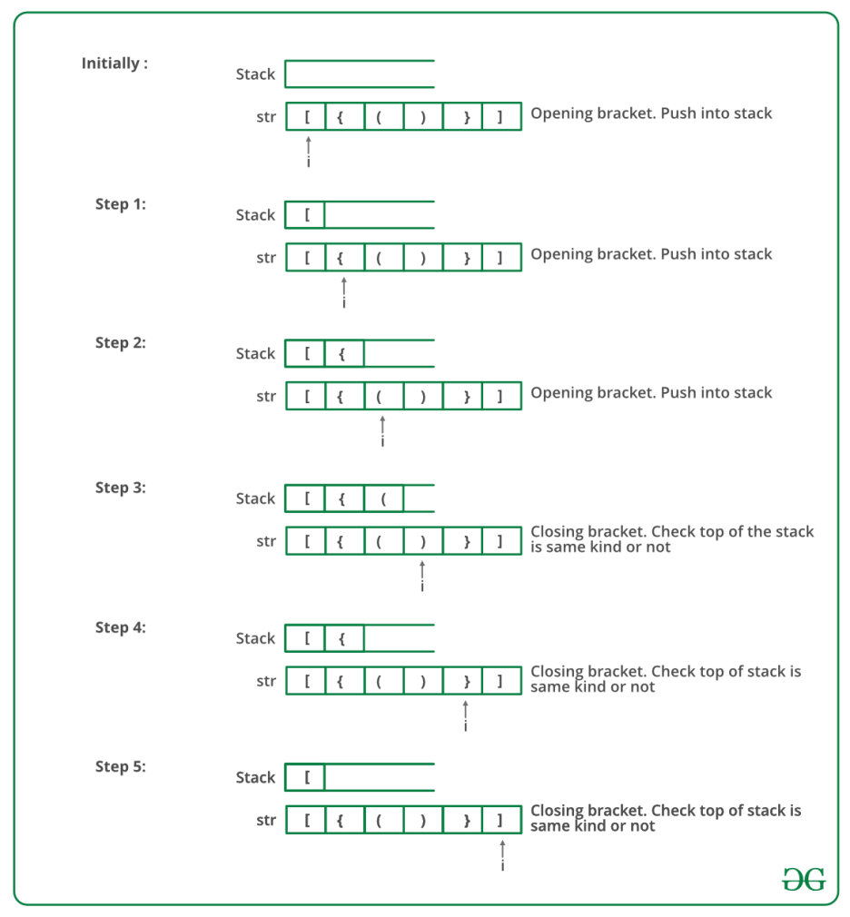 바로 직전 예제를 변경하여 괄호 검사 프로그램을 구현해 보자. 우선 괄호 검사 프로그램의 logic을 생각해보면