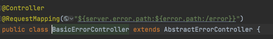 스프링 부트가 자동 등록한 BasicErrorController 는 이 경로를 기본으로 받는다. 다음 BasicErrorController 의 선언부를 보자!