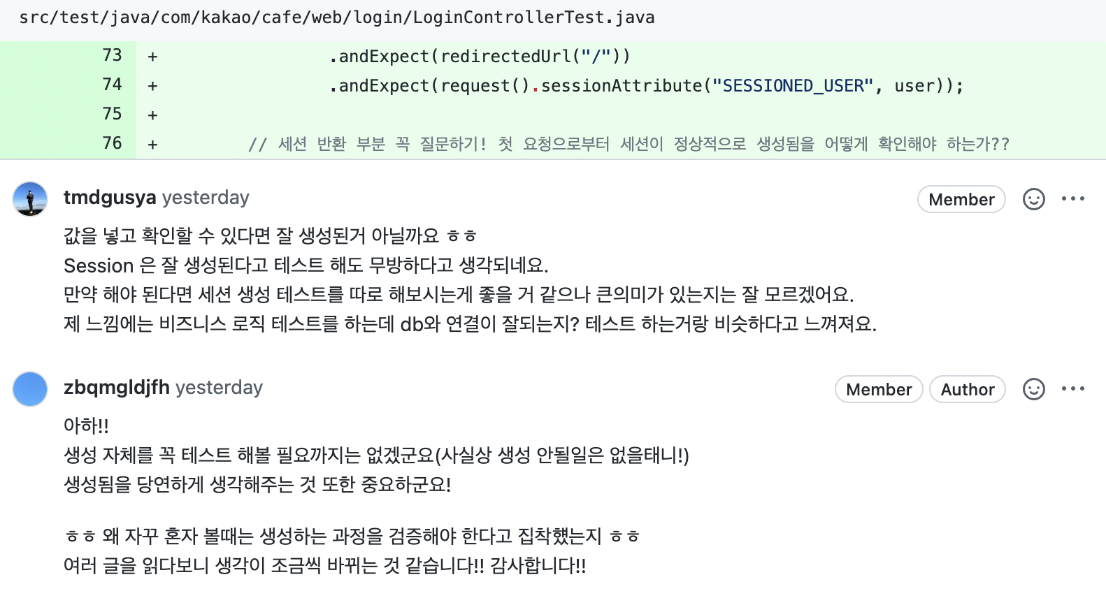 - andExpect에서 session에 회원정보가 잘 저장되는지 확인하고 싶어 다음과 같이 사용했는데 올바른 코드 일까요?