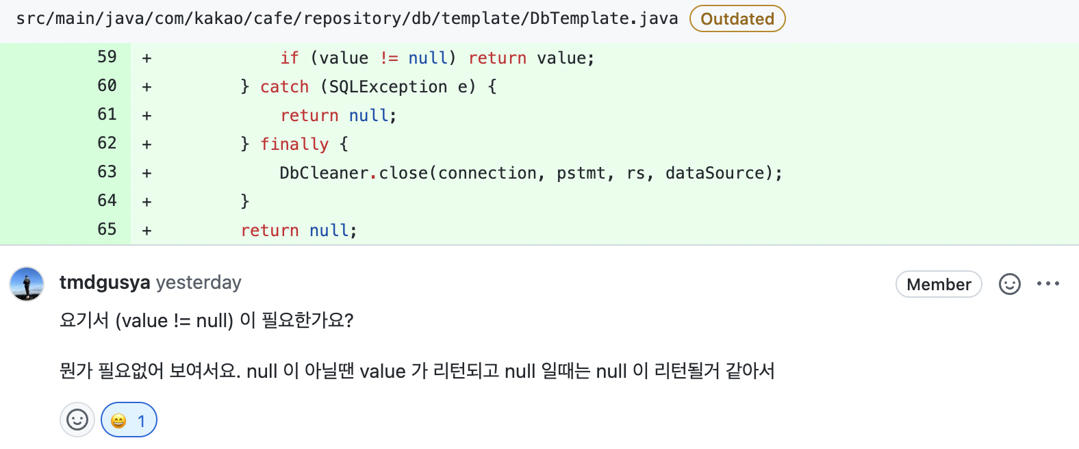 아닠ㅋㅋ if에서 null이면 null을 반환한다닠ㅋㅋㅋ 그냥 바로 return하면 되는것 을 굳이 if문을 추가한 것 이다.