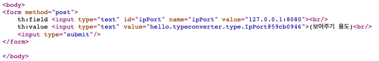 th:value <input type="text" th:value="*{ipPort}">(보여주기 용도)<br/> <input type="submit"/>