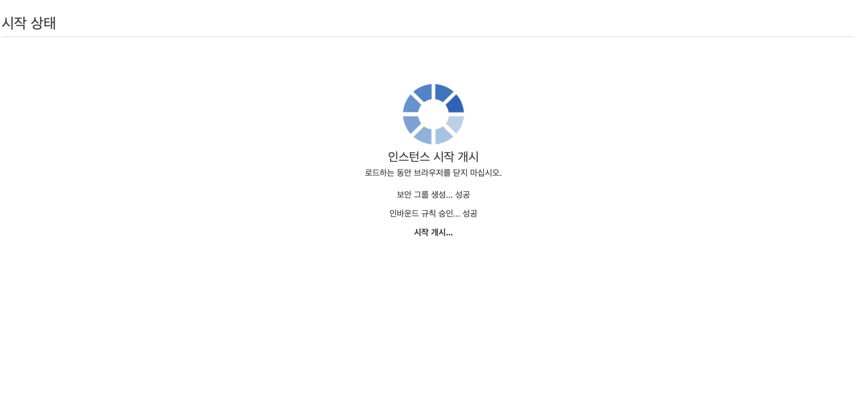 지금 까지의 설정을 확인한 후 시작하기를 눌러줍시다! 그럼 다음과 같은 화면이 보인다!