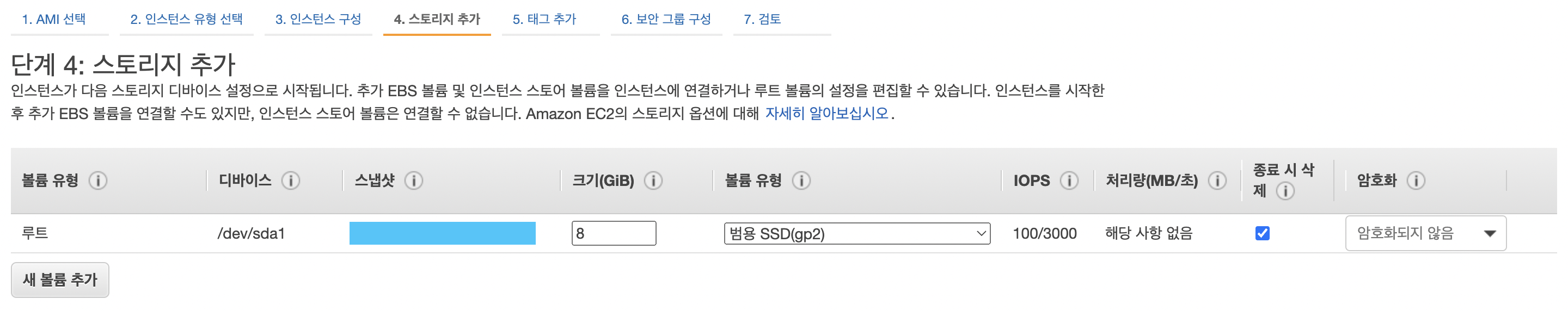 프리 티어에서는 30GB까지 가능한데, EC2 인스턴스를 중지해도 스토리지는 요금이 나가기 때문에 8GB면 적당하다.
