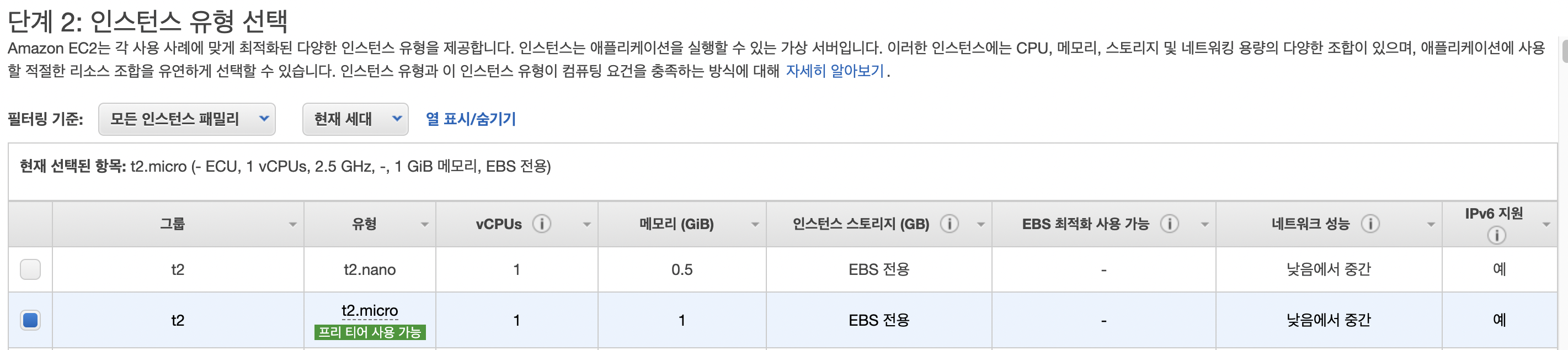 프리 티어로 사용 가능한 t2.micro를 사용하자!