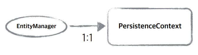 예를 들어 J2SE 와 같은 환경에서는 EntityManager안에 영속성 컨텍스트가 1:1로 맵핑된다고 생각하면 된다.