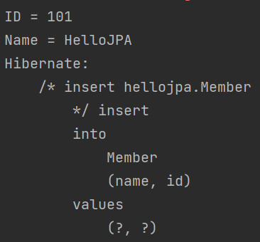 객체가 생성된 후, persist(member)를 통해 영속화 된 상태이다. 코드로 보면 다음과 같다.