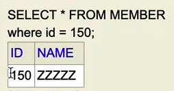 ID 150 의 NAME이 "ZZZZZ"로 변경되었음을 확인할수 있다.