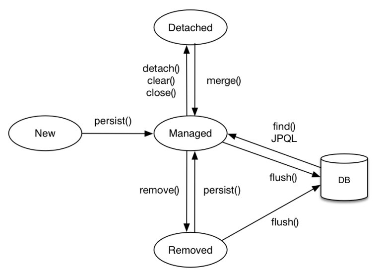 - 영속 (managed) 영속성 컨텍스트에 관리되는 상태