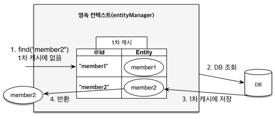 Member findMember = em.find(Member.class, "member1");