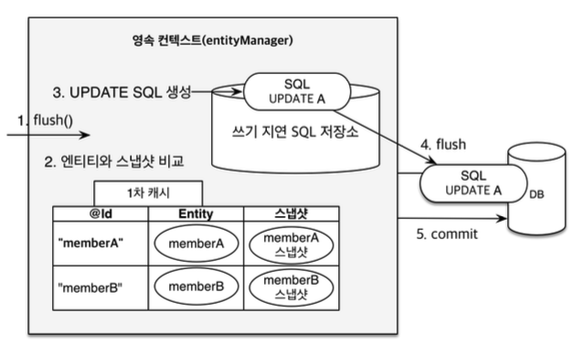 - 플러시는 영속성 컨텍스트를 비우지 않는다.
