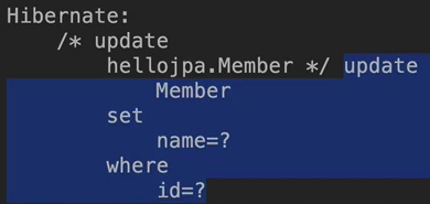 준영속화가 되지 않았다면 member의 NAME을 변경했기 때문에 UPDATE 쿼리문이 "============" 이후에 보였어야 한다.