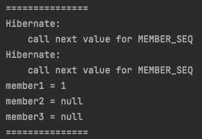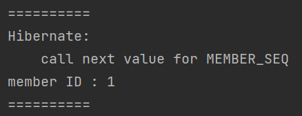 현재 값이 -49로 되어있다. 이후 member1을 영속화 하면 그때 -49 에서 1로 바뀌게 된다. 처음 호출했을때 1값을 반환해주기 위해 초기 시작값은 음수로 되어있다.