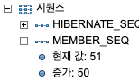 DB의 시퀀스 객체를 확인해 보면 다음과 같이 51로 증가해 있다.