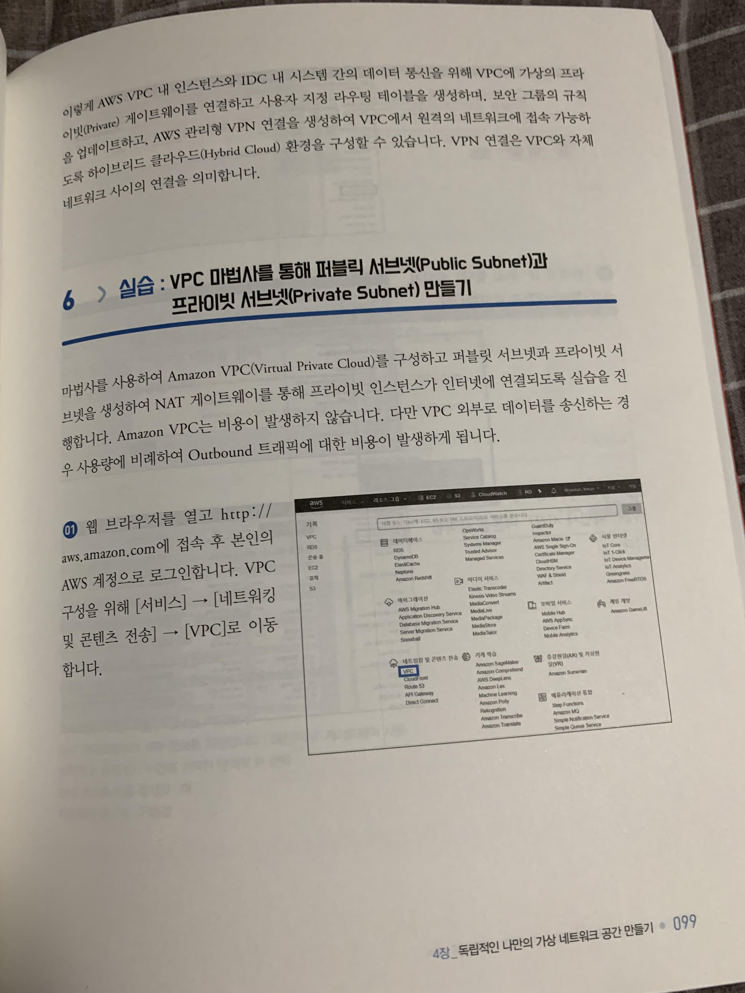 예를 들어 VPC는 생성하는 부분의 많이 다르다... 이는 어쩔 수 없는 것이 책이 나온 시점을 생각하면 어쩔수 없다.