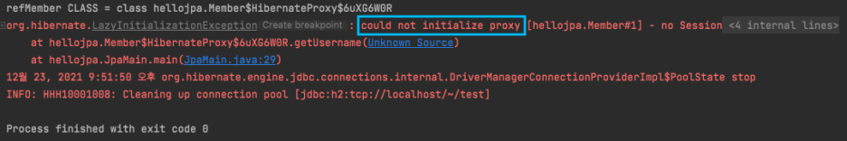 또한 ID같은 경우 바로 출력하는것을 볼수있는데, 이는 entityManager.getReference()를 할때 ID값을 넘겨주었기 때문이다.
