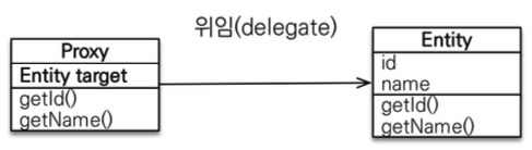 프록시 객체는 실제 객체에 대한 참조(target)을 보관하고 있으며, 프록시 객체를 호출하면 프록시 객체는 실제 객체의 메서드를 호출하게 된다.