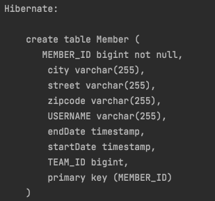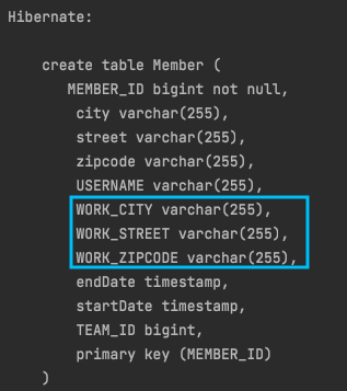 DB 입장에서는 바뀔점이 없다. 임베디드 타입을 사용하든 안하든 회원 테이블은 똑같다.