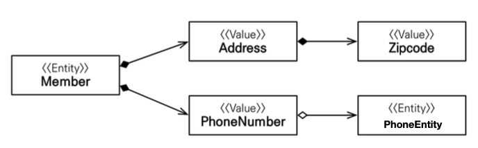 - Address 라는 임베디드 타입은 Zipcode라는 임베디드 타입을 갖고있다.