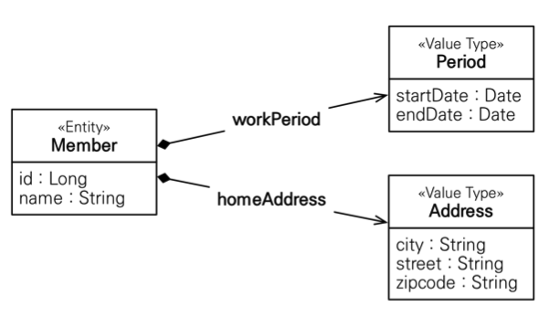 주로 기본값 타입을 여러개 모아서 만들기 때문에 복합 값 타입이라고도 부릅니다.
