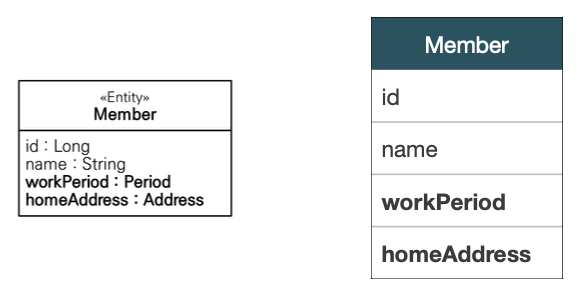 - 임베디드 타입을 사용하기 전과 후에 매핑하는 테이블은 같다.