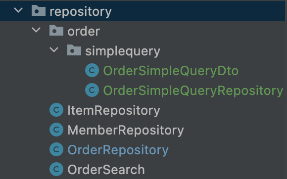 아니면, 추가적으로 repository.order.simplequery 라는 디렉토리를 추가로 만든 후, 여기에 해당 DTO용 repository를 따로 만든다.