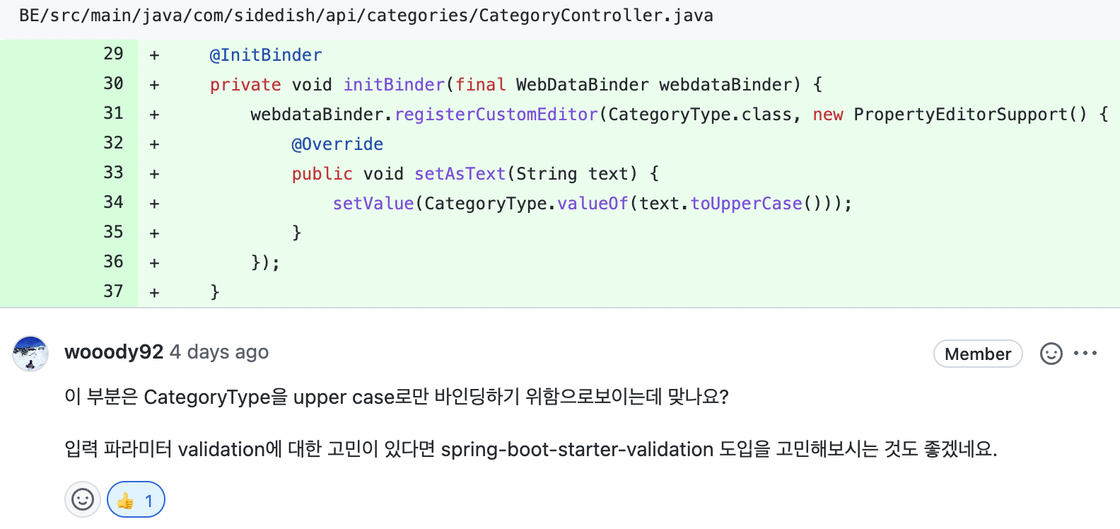 리뷰어님께서는 validation 적용을 고민하라 하셨는데 음....