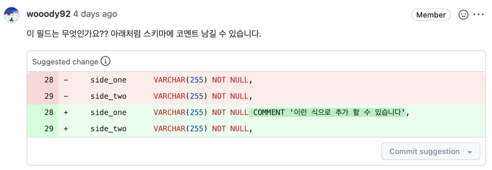 처음알게된 기능이다... DB에도 comment 기능이 있었다니! 완전 꿀팁인것 같다!