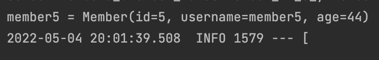 이후 다시 테스트를 실행하면 당음과 같이 member5의 나이가 44로 출력된다.