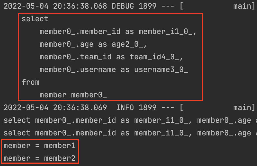 List<Member> findMembers = memberRepository.findByUsername("member5"); // 영속성 컨텍스트에서 찾는 멤버