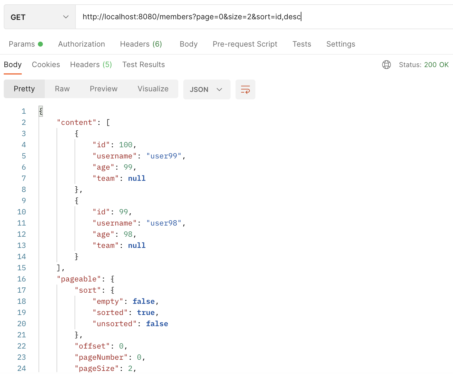 http://localhost:8080/members?page=0&size=2&sort=id,desc
