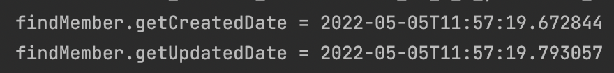 System.out.println("findMember.getCreatedDate = " + findMember.getCreatedDate());