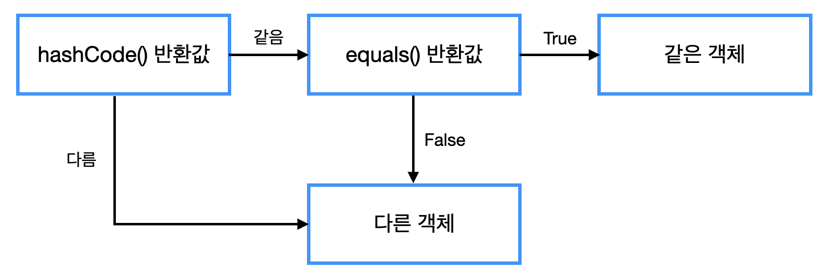 hash값을 사용하는 Collection들은 객체가 같은지를 판단하기 위해 다음과 같은 과정을 거친다.