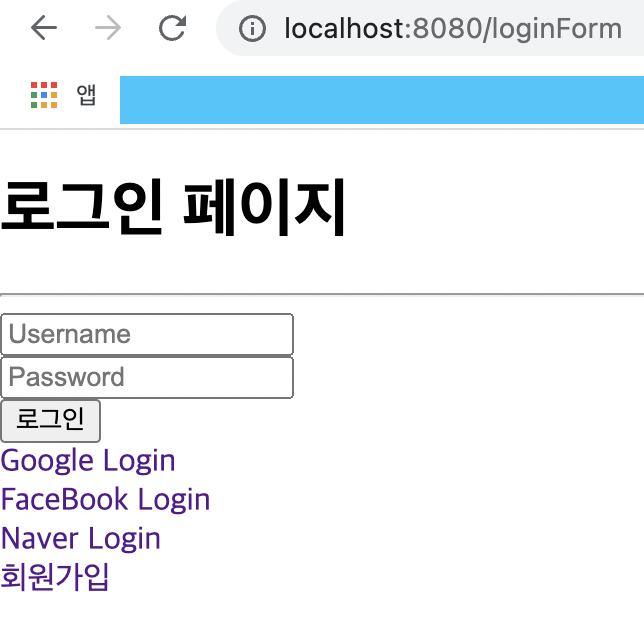 우선 loginForm으로 이동해보면 다음과 같은 화면이 보인다.