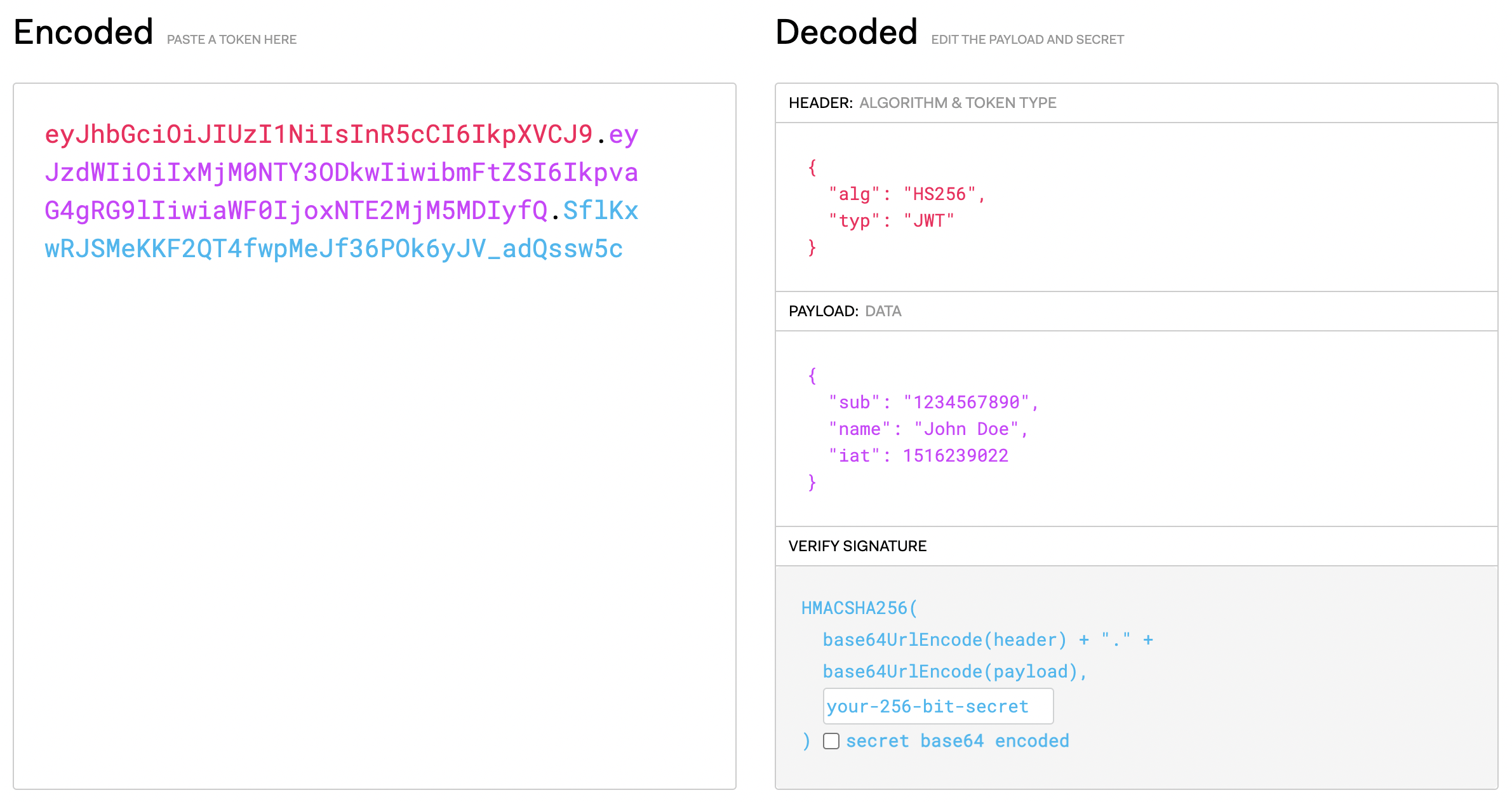추가로 Base64Url는 암호화된 문자열이 아니고, 그냥 인코딩한 문자열이다. Base64Url로 다시 디코딩 하면 내용을 누구나 확인할수 있다.