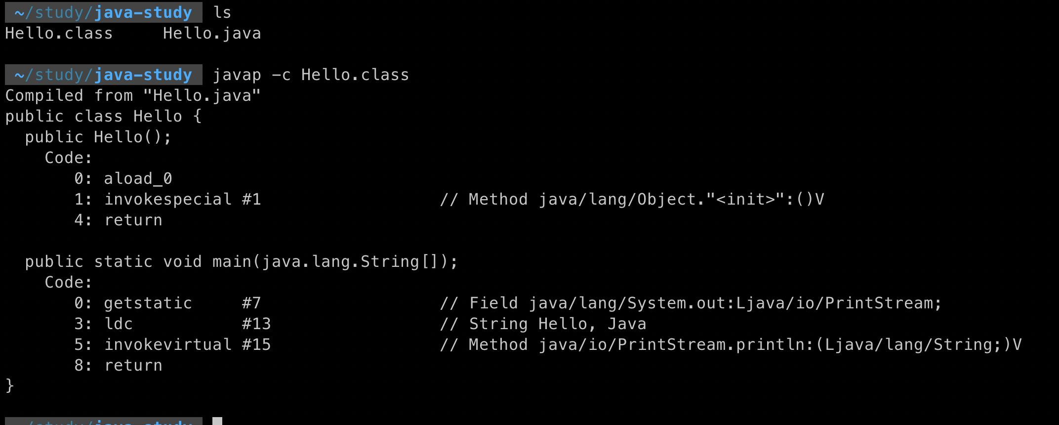 우리는 기본적으로 Hello.java 와 같이 java 파일을 만든다. 이를 컴파일한것이 바이트 코드이다.