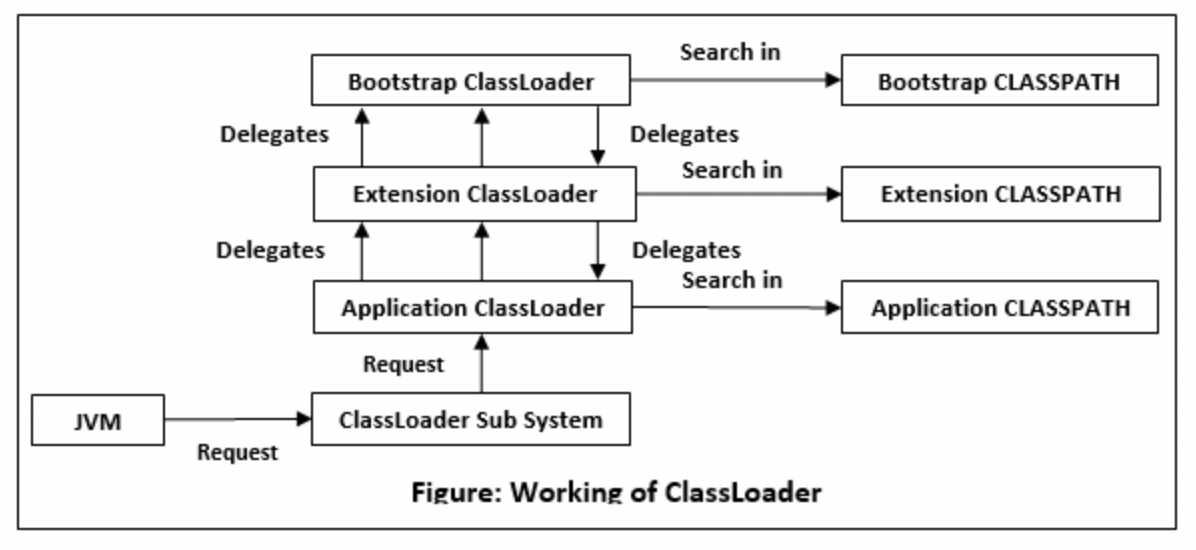 맨 위에있는 BootStrap Loader를 통해 먼저 class 들을 읽고, 여기서 읽지 못하는 class를 다음 PLATFORM Loader가 일고, 여기서도 못읽으면 APP Loader가 읽게 돤다.