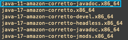 java-11-amazon-corretto-javadoc.x86_64 가 ec2에서 설치할 수 있는 jdk11 버전 이다.