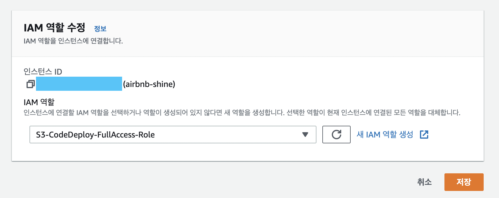 지금까지의 과정 순서를 똑같이 따라하셨다면, CodeDeploy Agent를 시작한 후에 IAM Role을 EC2에 부여했기 때문에 아마 Agent가 IAM Role을 가지고 있지 않아 배포가 실패할 것입니다.