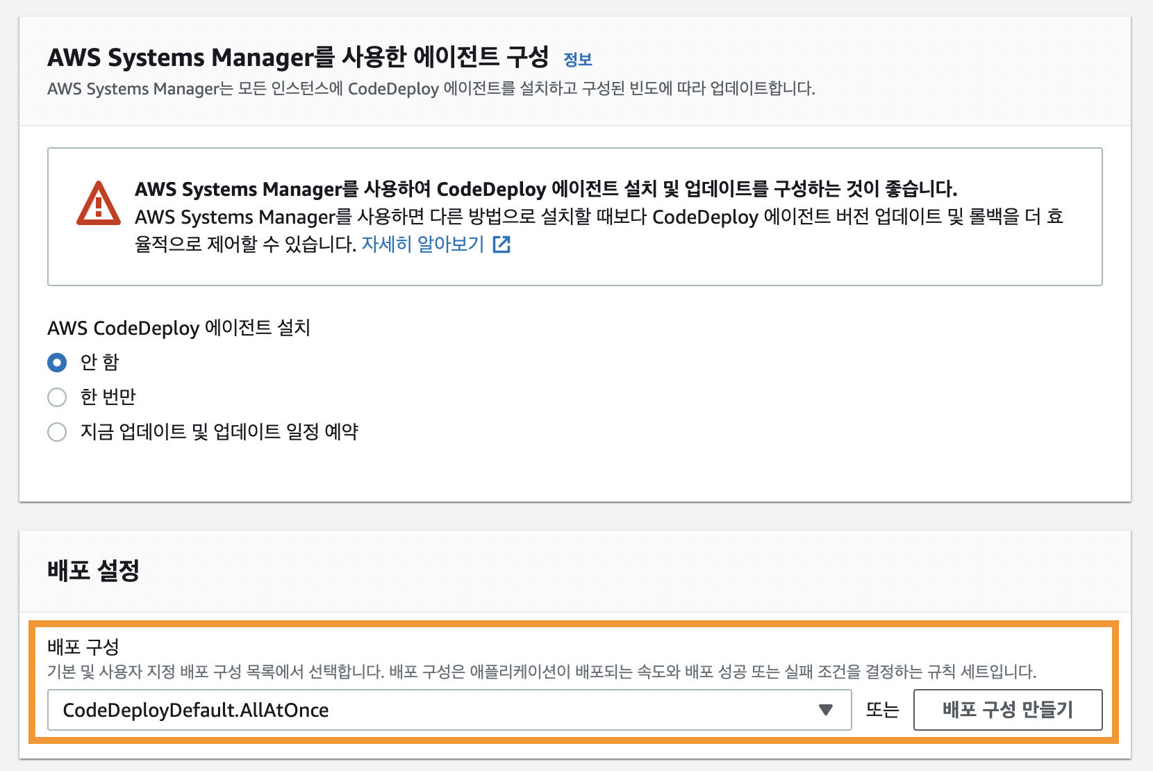 실제로 배포를 수행하는 것은 Agent이기 때문에 반드시 EC2 인스턴스에 설치되어 있어야 합니다.