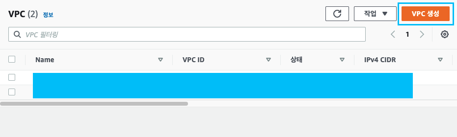 다음과 같이 VPC 로 이동하여 VPC 생성을 눌러줍시다.