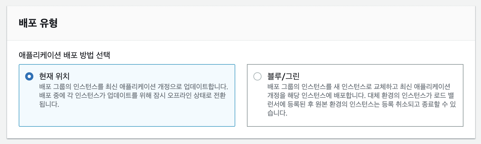 - 배포 그룹 설정에서 선택했던 배포 방식을 지정합니다.