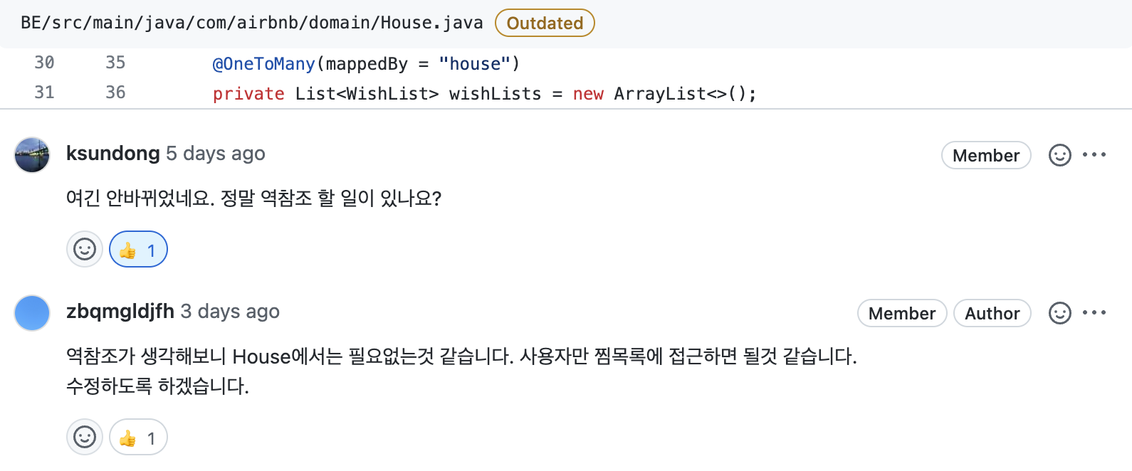 찜 목록에 해당하는 wishList는 User가 참조하지, House 가 참조할일이 거의 없는것이 사실 이였다.