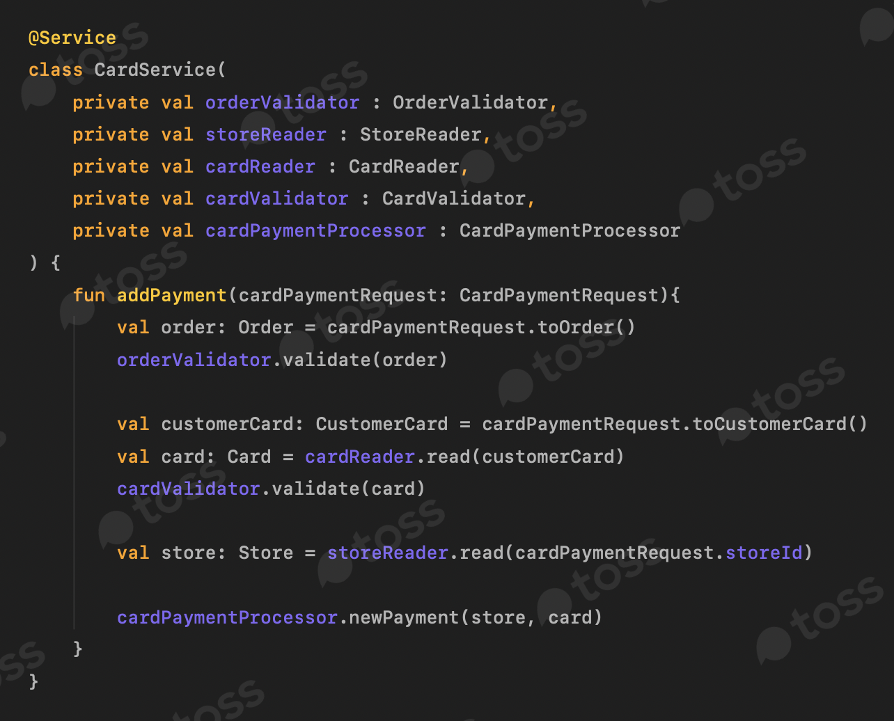 CardService는 개념적으로 카드라는 개념에 속하는 class 입니다.