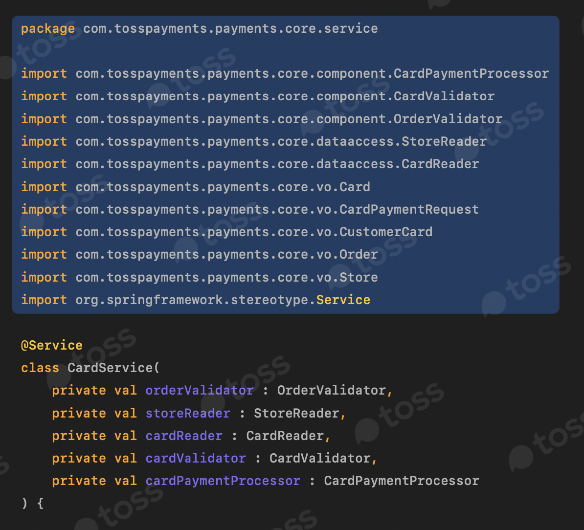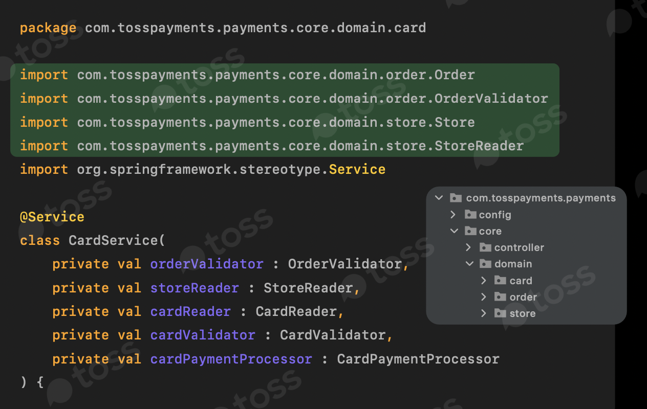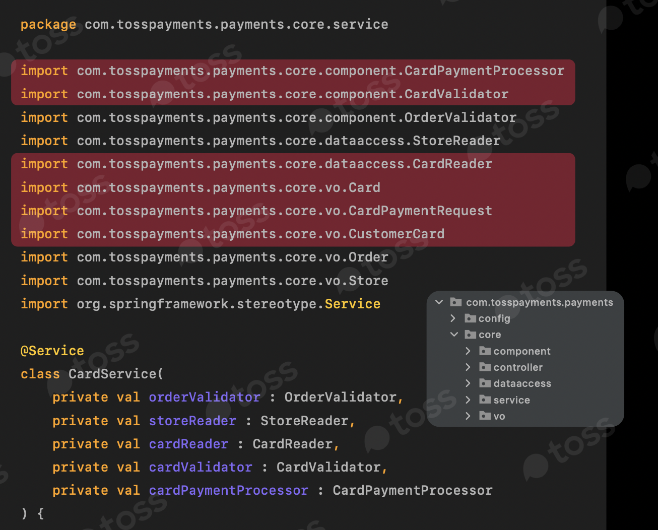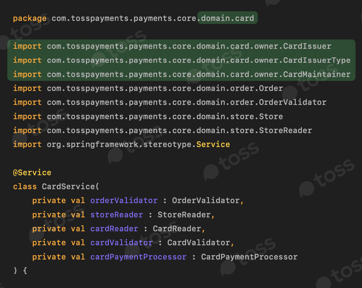 즉, CardService가 존재 하려면 이 클래스들이 꼭 필요하면서 가까운곳에 응집되 있다는것을 의미합니다.