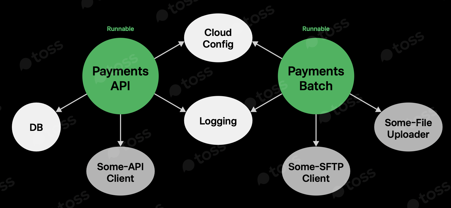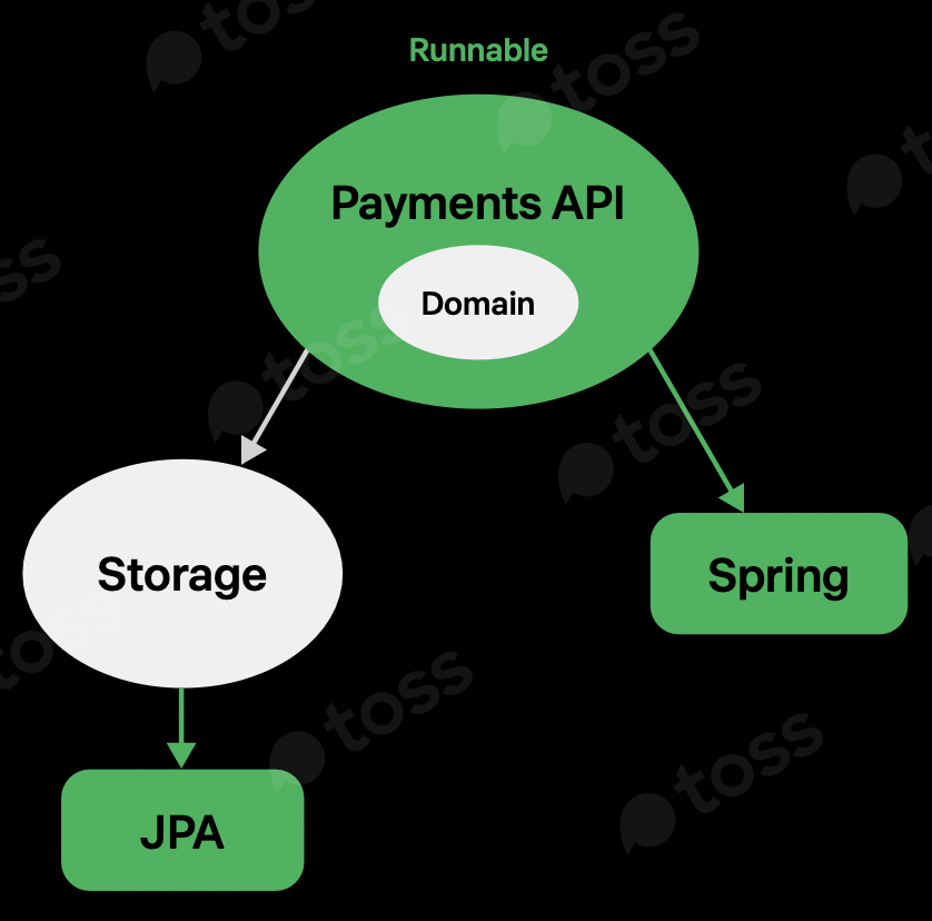 Payments API는 Domain 을 가지고 있는 형태입니다. 이러한 Module 구조를 다음과 같이 변경해 봅시다.