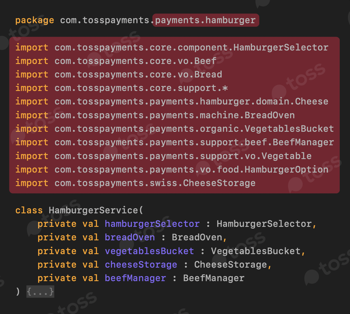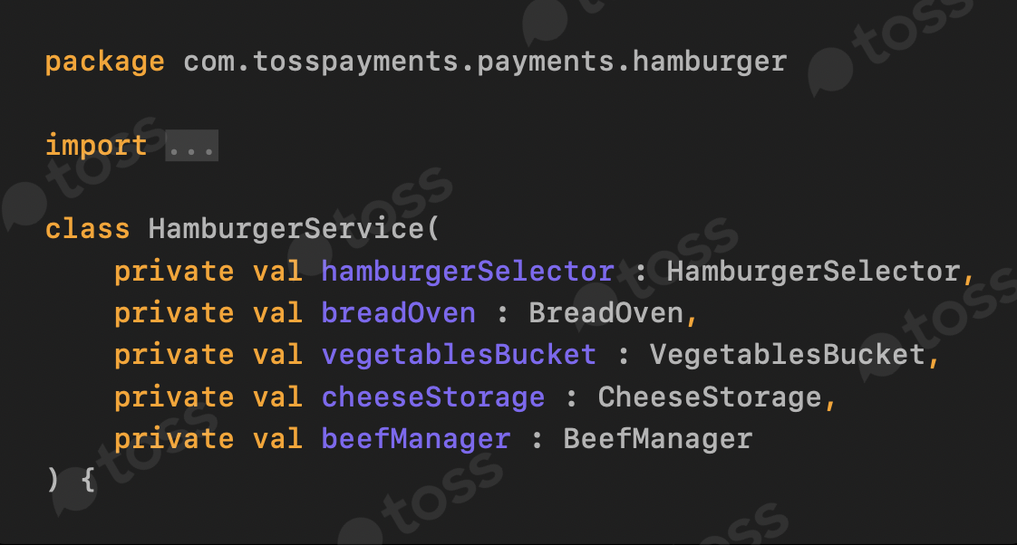 다음 코드는 햄버거를 만드는 가상의 HamburgerService 입니다!